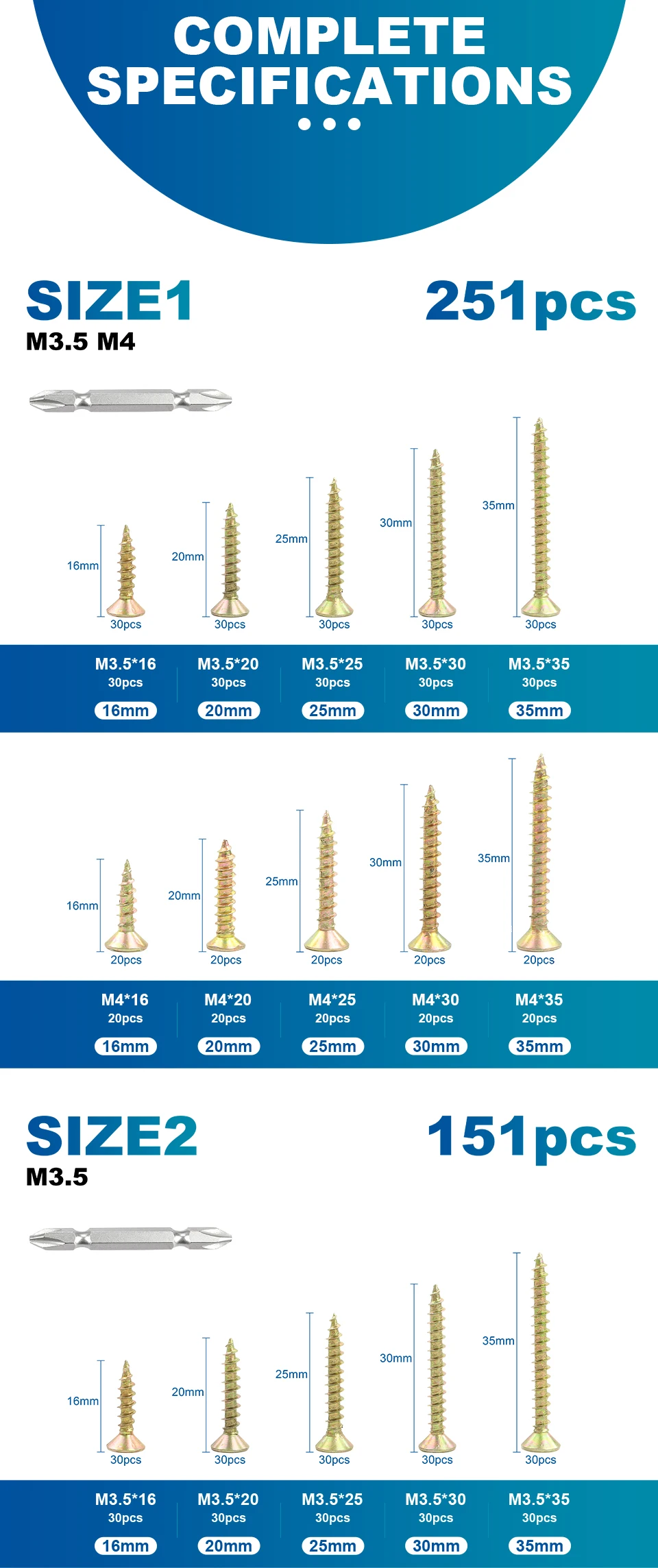 Quantity: 151pcs(m3.5 set) 251pcs(m3.5 m4 set) 210pcs(m4 set)