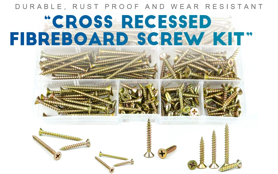 Wood Screw Kit M3.5 M4 Cross Recessed Fiberboard Screw Zinc Plated Flat Phillips Head Self Tapping Screw for Chipboard
