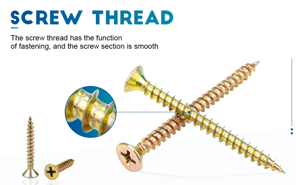 Advanced material : These screws are made from a high quality steel.They are high strength and will not deform or break under normal use.The aggressive screw twist pattern allows you to drive them fast and to complete your project efficiently and quickly.